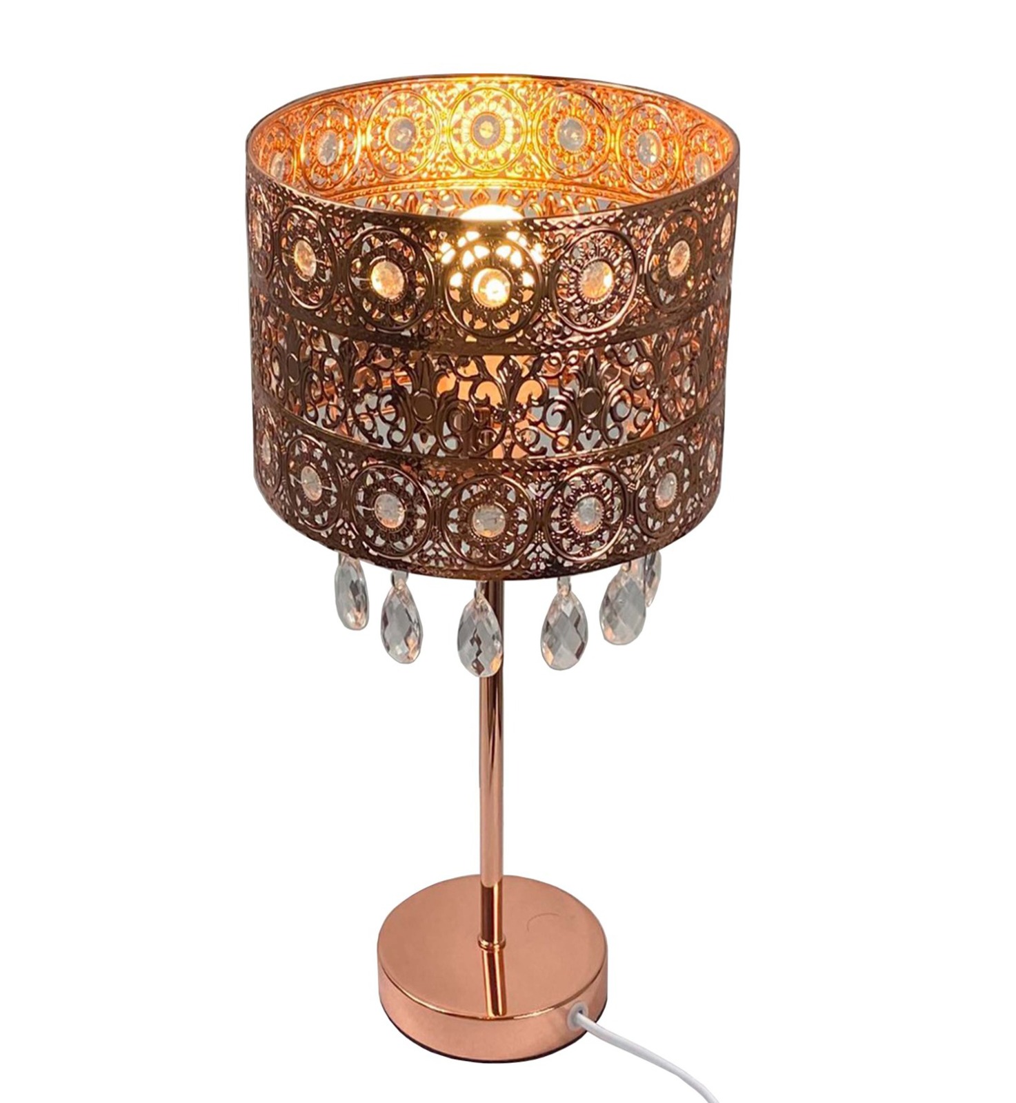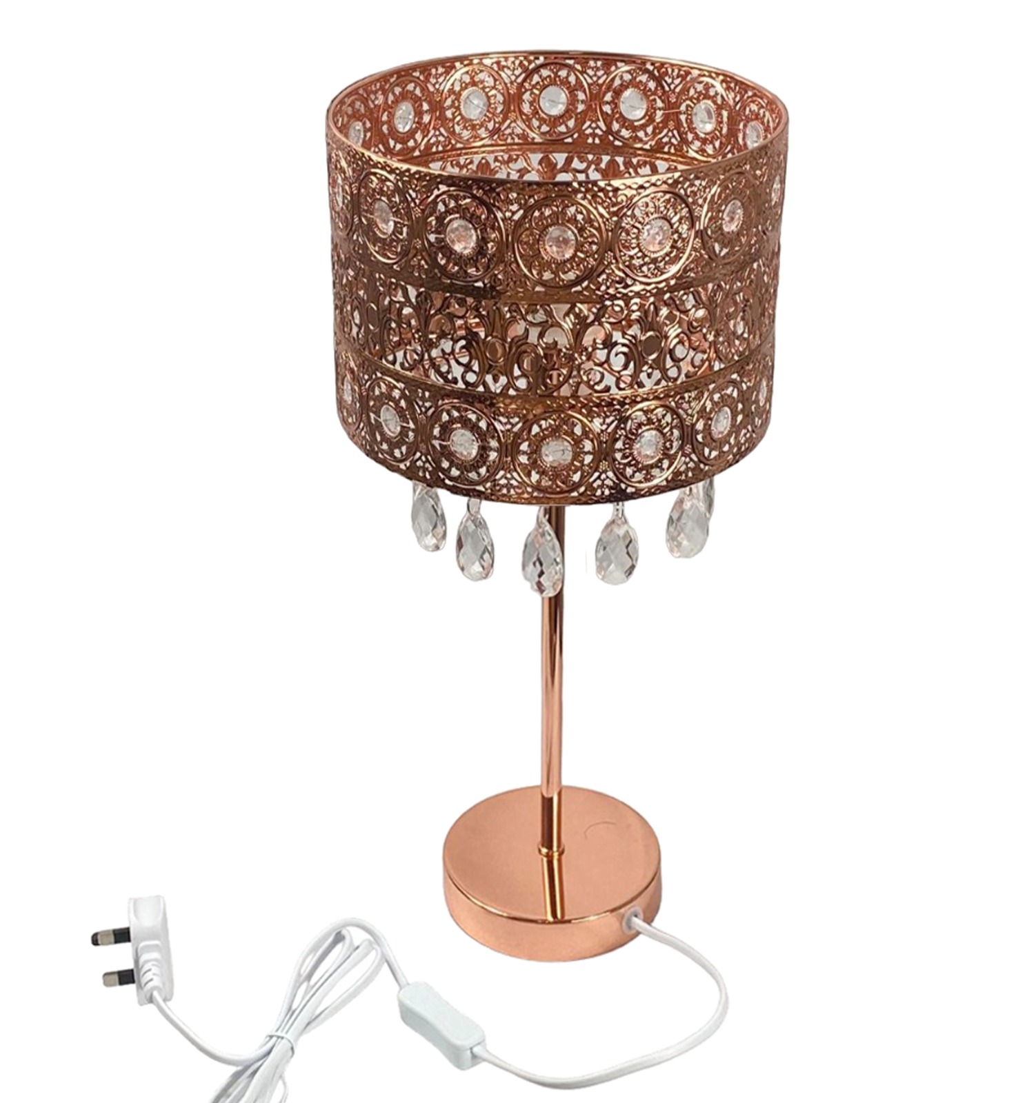 Bedside Metal Lamp Shade Table lamp with Clear Pendent Droplets For Bedroom